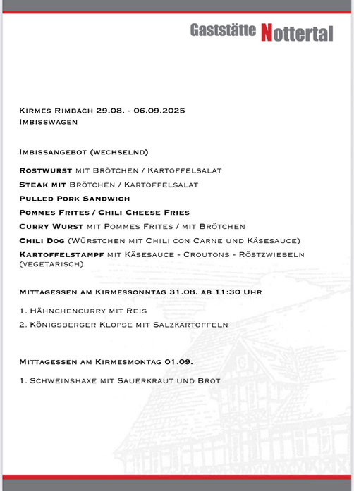 die Kirmes steht vor der Tür. Wir das Team der Gaststätte Nottertal und der Kirmesverein Körner e.V. lädt Sie recht herzlich ein.